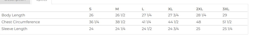 | Size | XS, SM, MD, LG, XL, 2X, 3X |