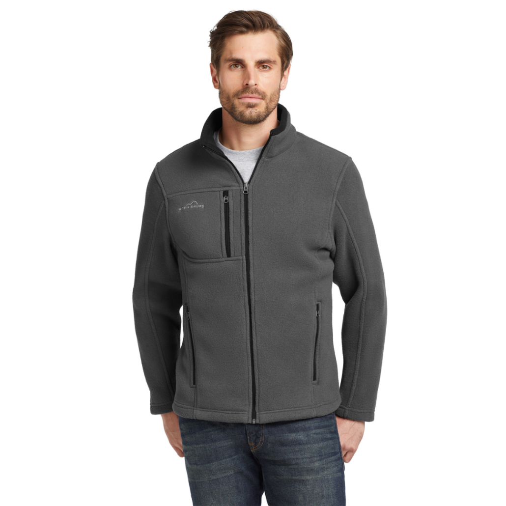 This super soft and warm jacket is as comfortable as it gets for fall hikes and everyday excursions. Contrast roll-top collar, zippered chest pocket, contrast reverse coil zippers, front zippered pockets with tricot lining, open cuffs and an open hem. Embroidered Eddie Bauer contrast logo on right chest. Made of 12-ounce, 100% polyester fleece. Produced using Low Impact Technology (L.I.T.™) which uses less dyestuffs, thermal energy and water for enhanced softness, performance and after-care quality.