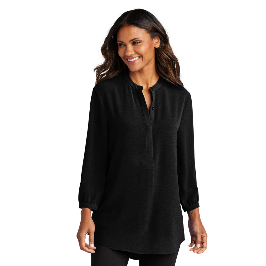 This beautifully draped tunic makes a statement with its longer length and accentuated gathers at the back yoke.