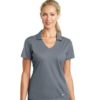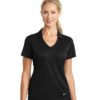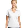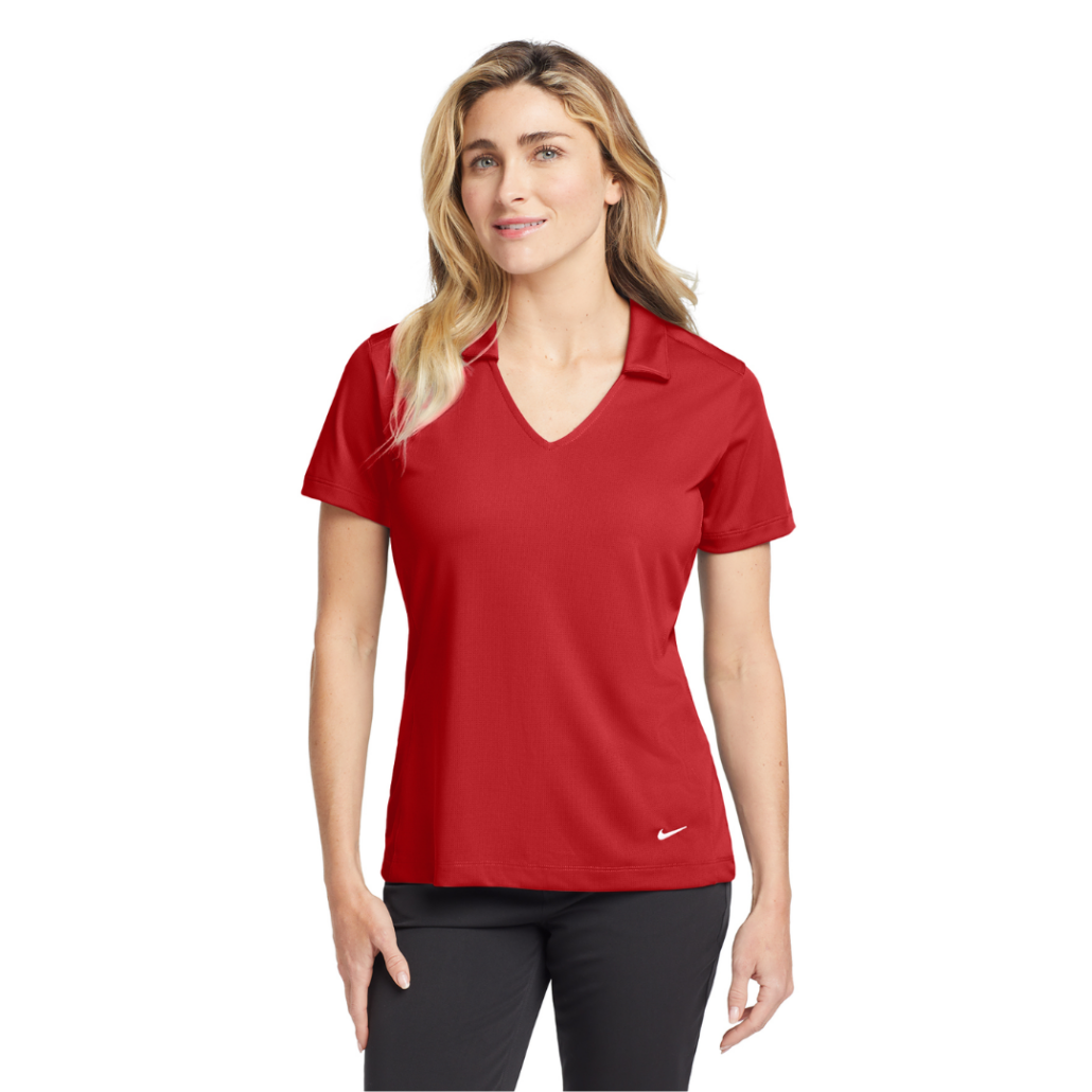 Designed for the ultimate in performance, this polo has a soft drape and an understated vertical mesh texture. Dri-FIT moisture management technology provides breathable comfort during and after play. Tailored for a feminine fit with a Johnny collar. A contrast Swoosh design trademark is embroidered on the left hem. Made of 4.4-ounce, 100% polyester Dri-FIT fabric.