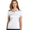 A no-nonsense look for any occasion, this must-have polo is built with Dri-FIT moisture management technology to help you stay dry, regardless of the venue. Design details include a self-fabric collar, dyed-to-match buttons and open hem sleeves. Tailored for a feminine fit with a three-button placket and side vents. A contrast Swoosh design trademark is embroidered on the left sleeve. Made of 4.5-ounce, 100% polyester Dri-FIT fabric.