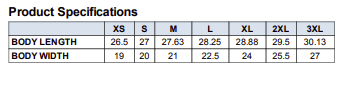 | SIZE | XS, SM, MD, LG, XL, 2X, 3X |